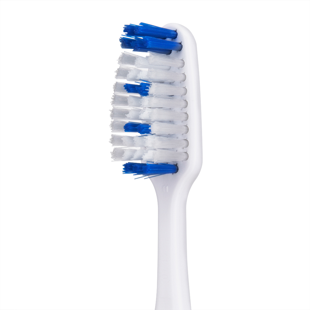 CABO ANGULADO E EMBORRACHADO: facilita o manuseio, proporcionando maior alcance e controle durante a escovação*. CERDAS INTERNAS E ONDULADAS: atuam na remoção da placa bacteriana. CERDAS EXTERNAS COM CORTE CONVEXO: limpam o lado externo do dente com suavidade. CERDAS FRONTAIS: limpam os dentes posteriores. *Vs Escovas TEK ® |